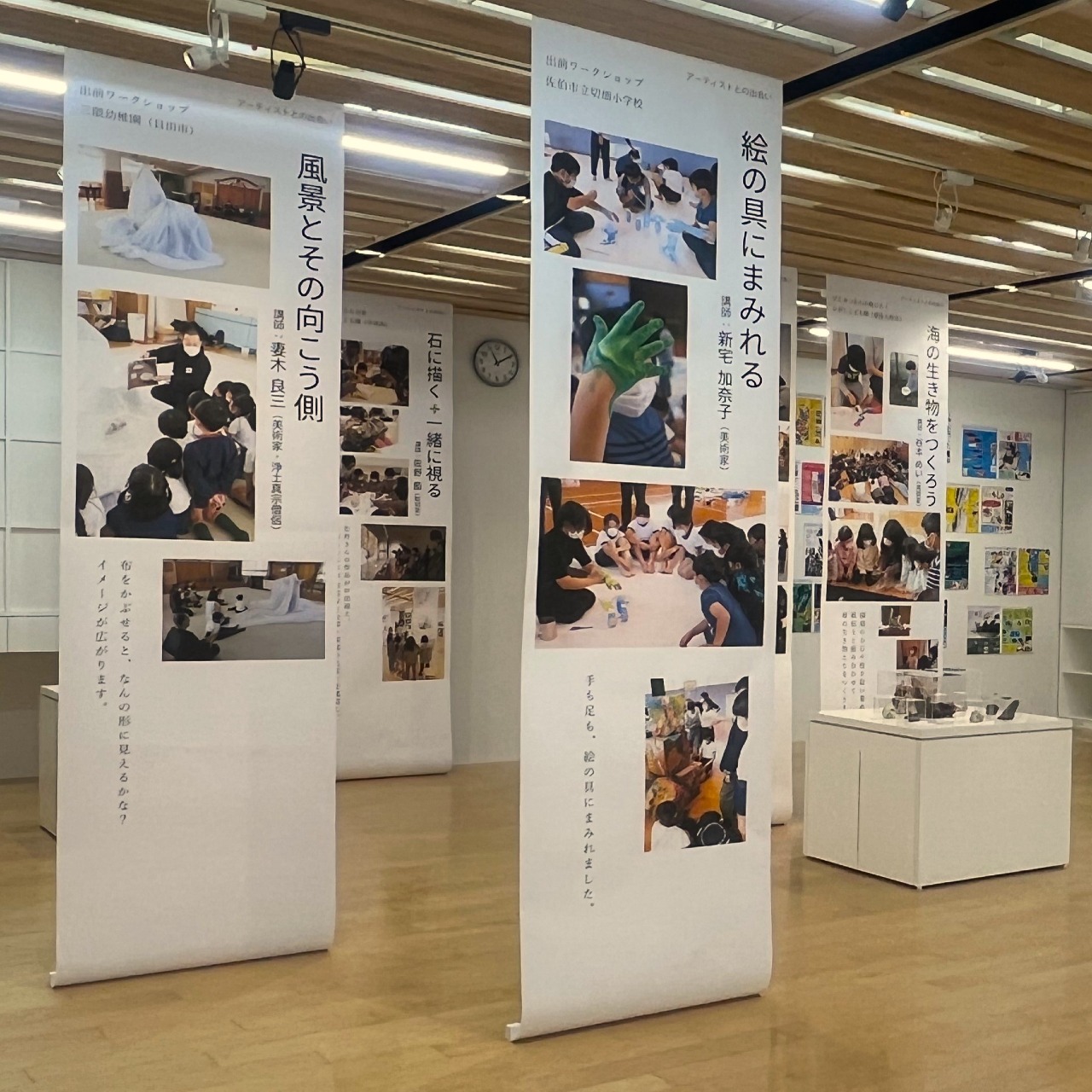 教育普及の活動を作品や写真、動画などで紹介する展示を定期的に開催します。