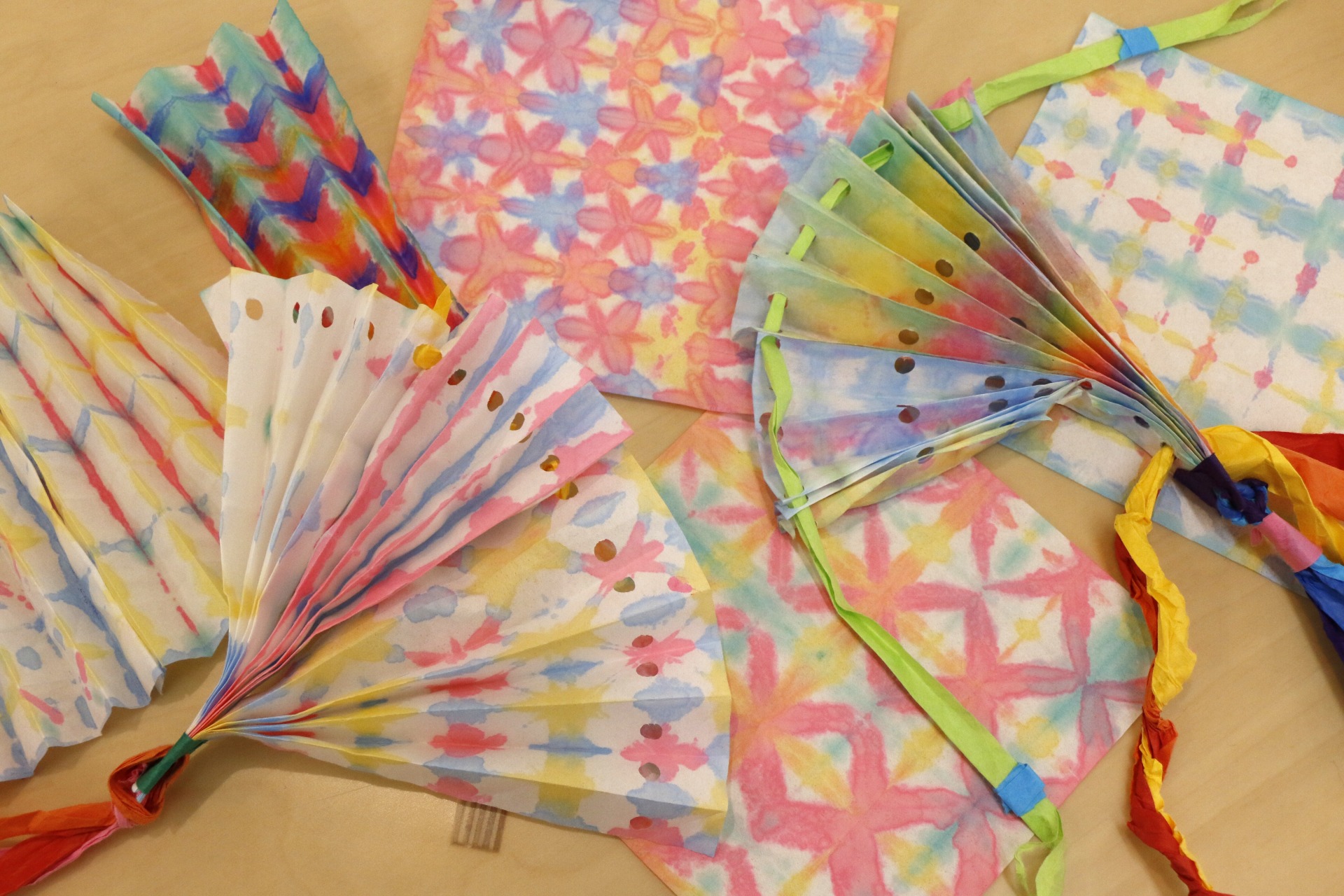 たたみ染めで模様をつけ、春風を起こす扇子をつくります。