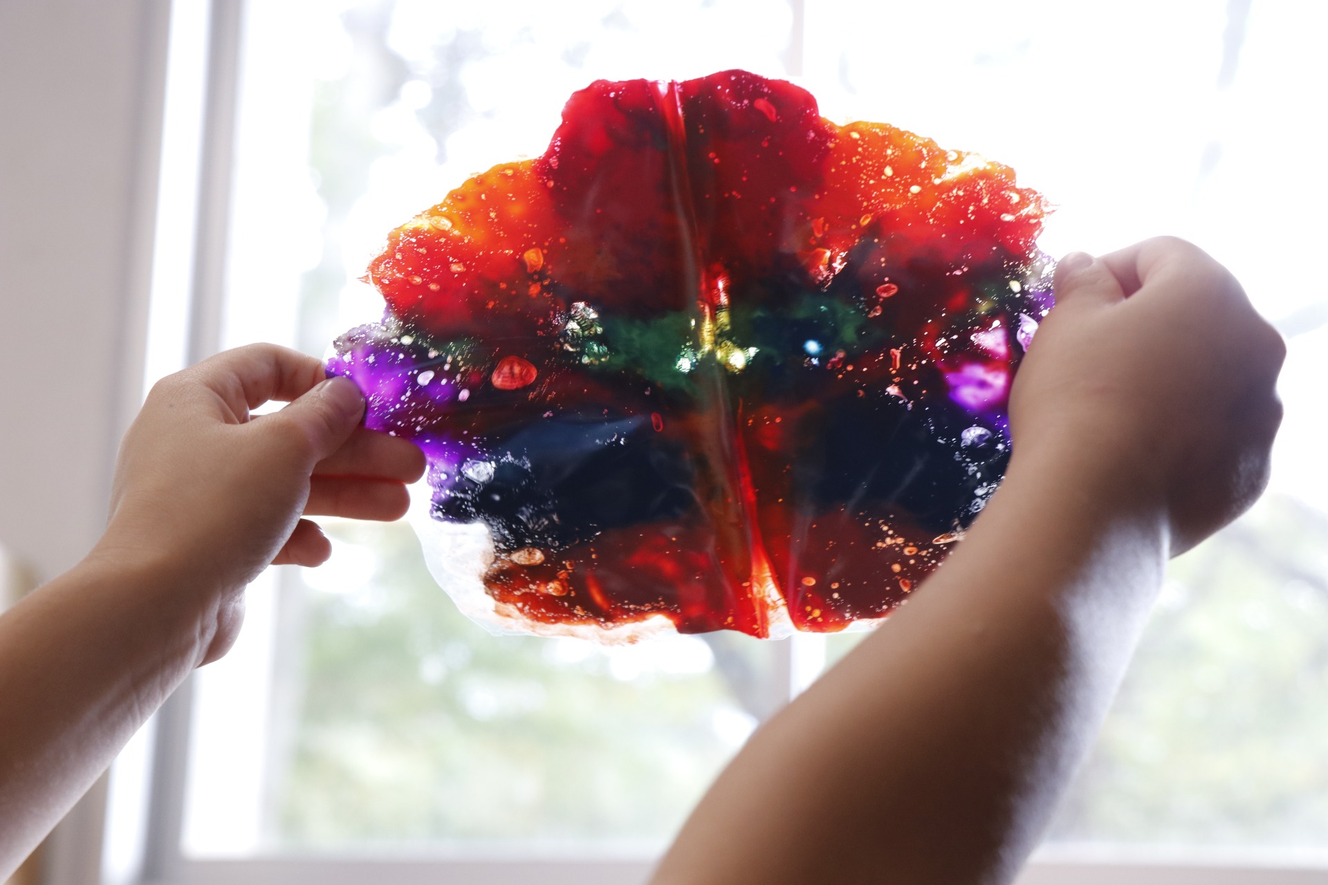 デカルコマニーの技法を使って、オーロラ模様のちょうちょをつくります。
