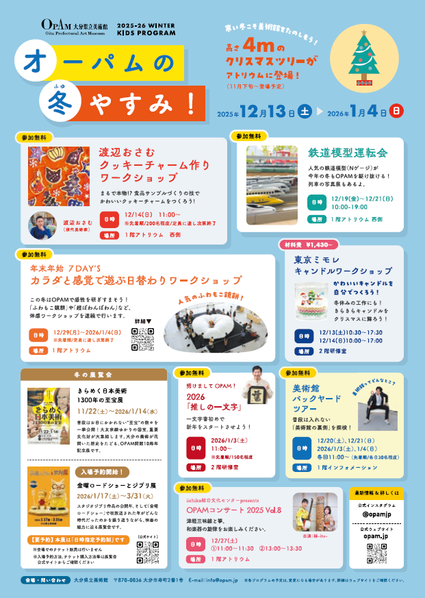 大分県立美術館では、冬休み、ご家族でたのしめるイベントを多数ご用意して皆様をお待ちしております!